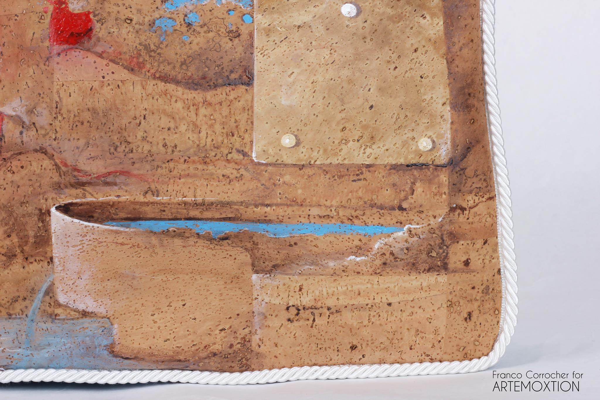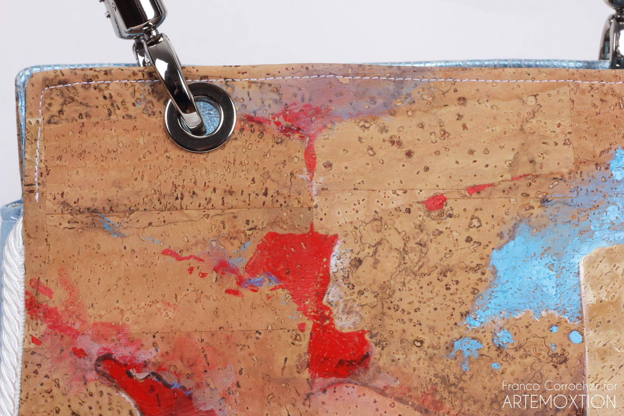 Ogni creazione è unica e per realizzarla, gli artisti, usano varie tecniche espressive come il collage polimaterico e la pittura su sughero, il materiale naturale scelto per questa forma d’arte da indossare.
